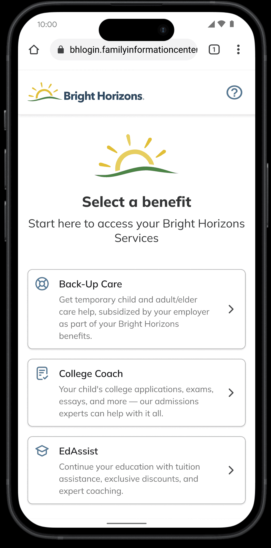 What I'd change: I'd bring the internal Bright Horizons employee group into research earlier. Their feedback on the "Choose a benefit" copy and the double-login confusion surfaced problems that the external group hadn't flagged. We caught it in time, but running that segment earlier would have shaped the modal copy before final designs rather than after.