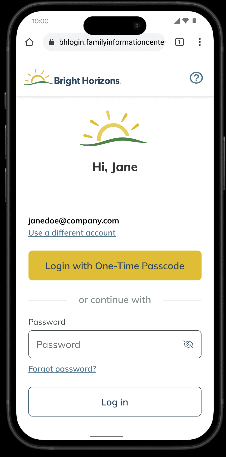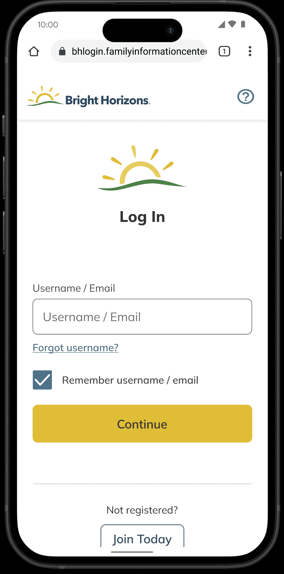 Legacy login page for BrightHorizons.com