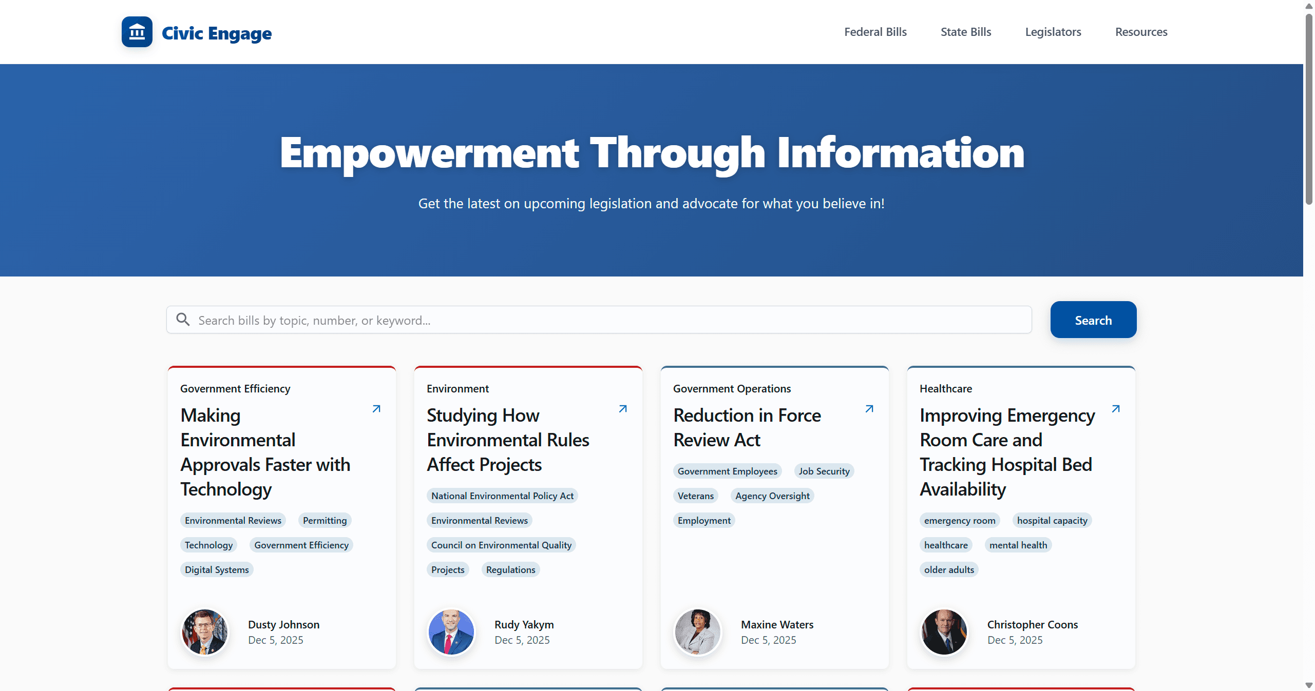 Citizens struggled to understand complex legislation and engage with representatives due to information overload and dense legal jargon. I designed and built an AI-powered platform that translates bills into plain language and provides a clear pathway to action, making civic participation accessible to everyone.