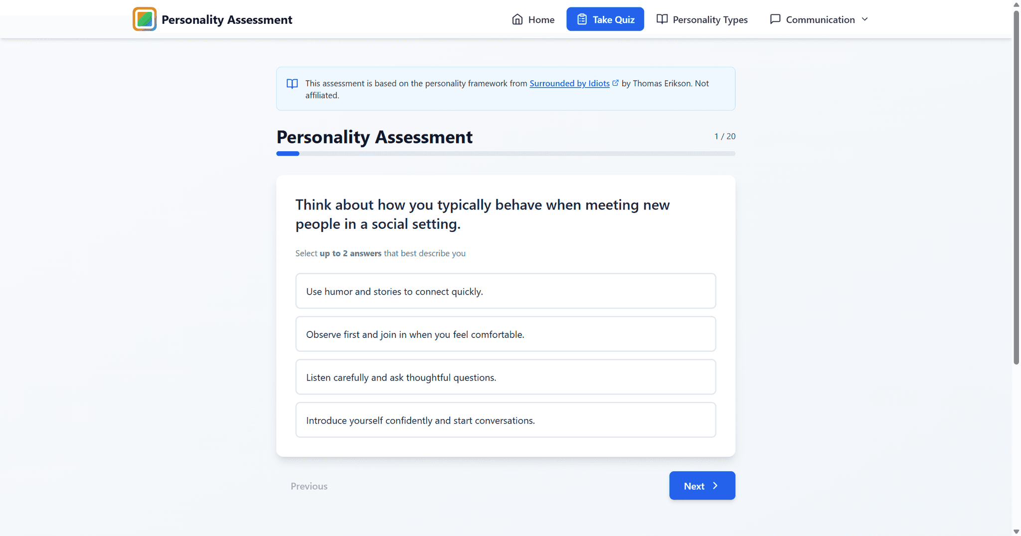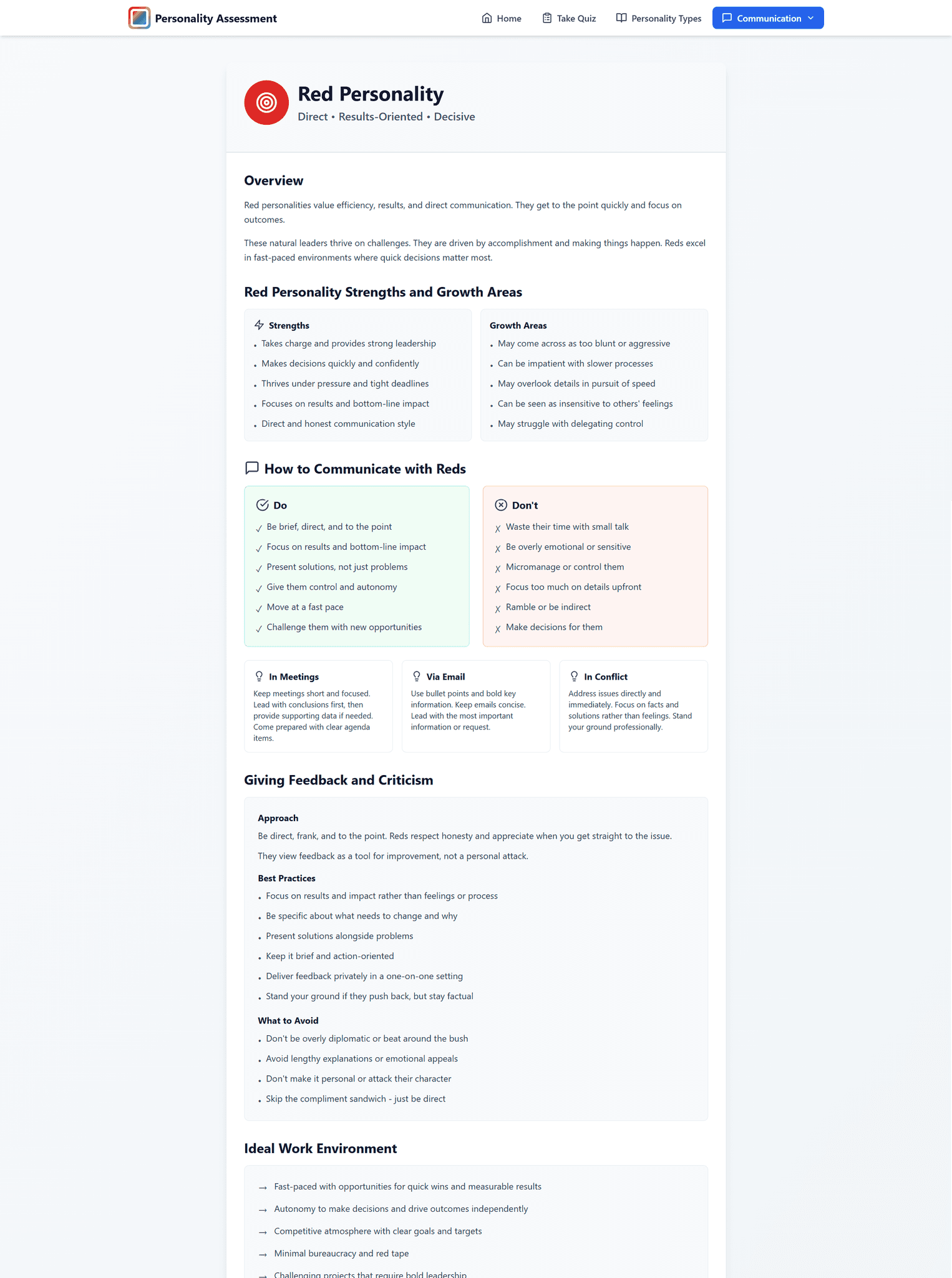Most people won't read a full book on communication styles, but they will take a personality quiz. I saw a chance to make these insights accessible through an interactive experience.